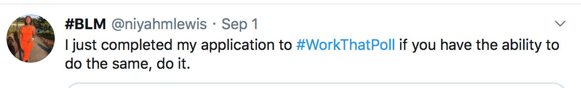 “This is going to be my first time working at the polls,” said Niyah Lewis, a graduating senior at Florida Agricultural and Mechanical University in Tallahassee. The political science major registered to become a poll worker in early September and announced it on Twitter. “I’m very excited to just be able to step up and do my part as an eligible voter and as a citizen of the United States,” she said.